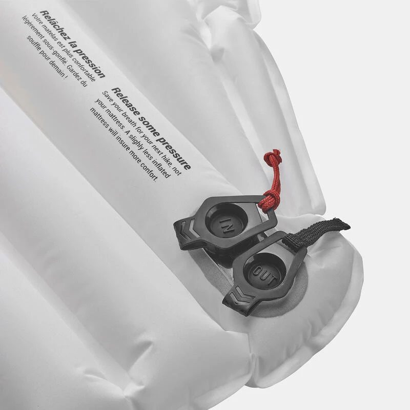 Une fois allongé, pensez à ajuster la pression de gonflage du matelas en appuyant légèrement sur la valve IN (capuchon ouvert). Un matelas trop dur est souvent synonyme d’inconfort.