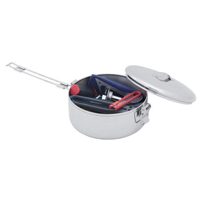 Cette poêle en acier inoxydable avec une poignée pliable et un couvercle bien ajusté est parfaite pour tous types de cuisines !